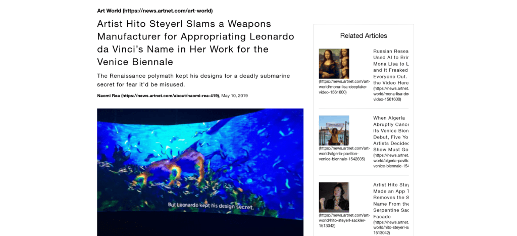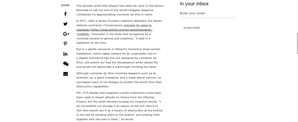 Hito Steyerl is one of the artists that I have researched into for my project. I actually saw some of her works when I went to the Venice Biennale back in November 2019.