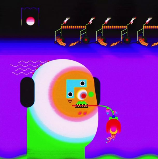Another example of how Hecker uses a sound environment to address the physiology and the psychology of the listening process itself, is the works Chimerization (2012) and Hinge (2012) which were exhibited together. Chimerization (3 readings of “experimental libretto” in 3 different languages) is played on tripling, doubling and echoes of the sounds. This tripling & doubling gives his work ‘linguistic dimensions‘ which allows him to explore how the audible sounds affects the spatial ‘to investigate the notion of psycho-acoustics‘. Once again, his work is not visually heavy but very focused on the acoustics and the experience.