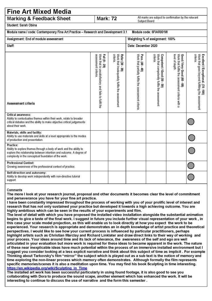 - the time that Tarkovsky is speaking about is not personal or subjective. The filmmaker doesn’t create time but works with the time they are given – a time internal to the image itself.
